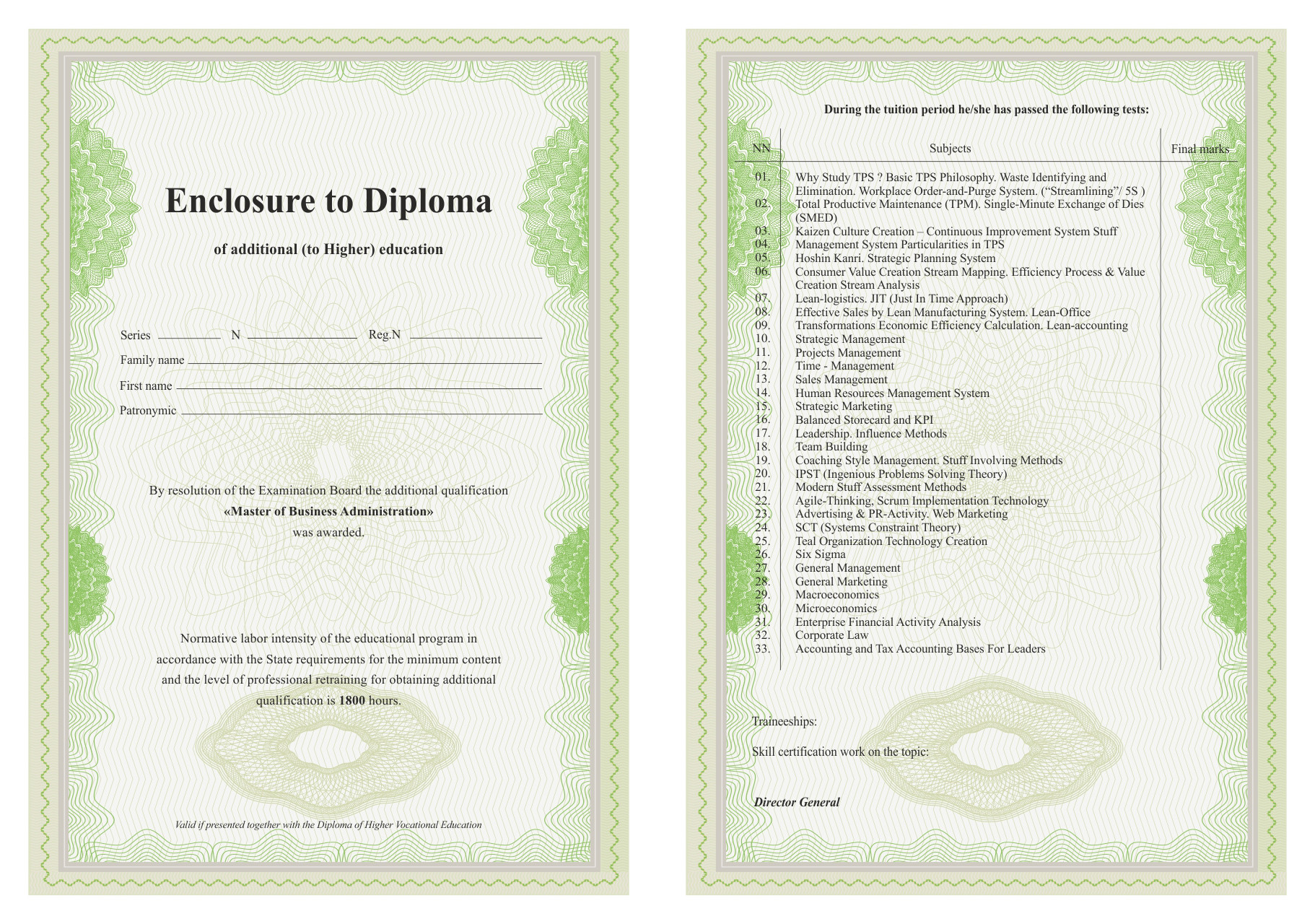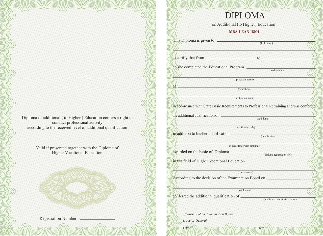 Диплом о дополнительном (к высшему) бизнес образовании